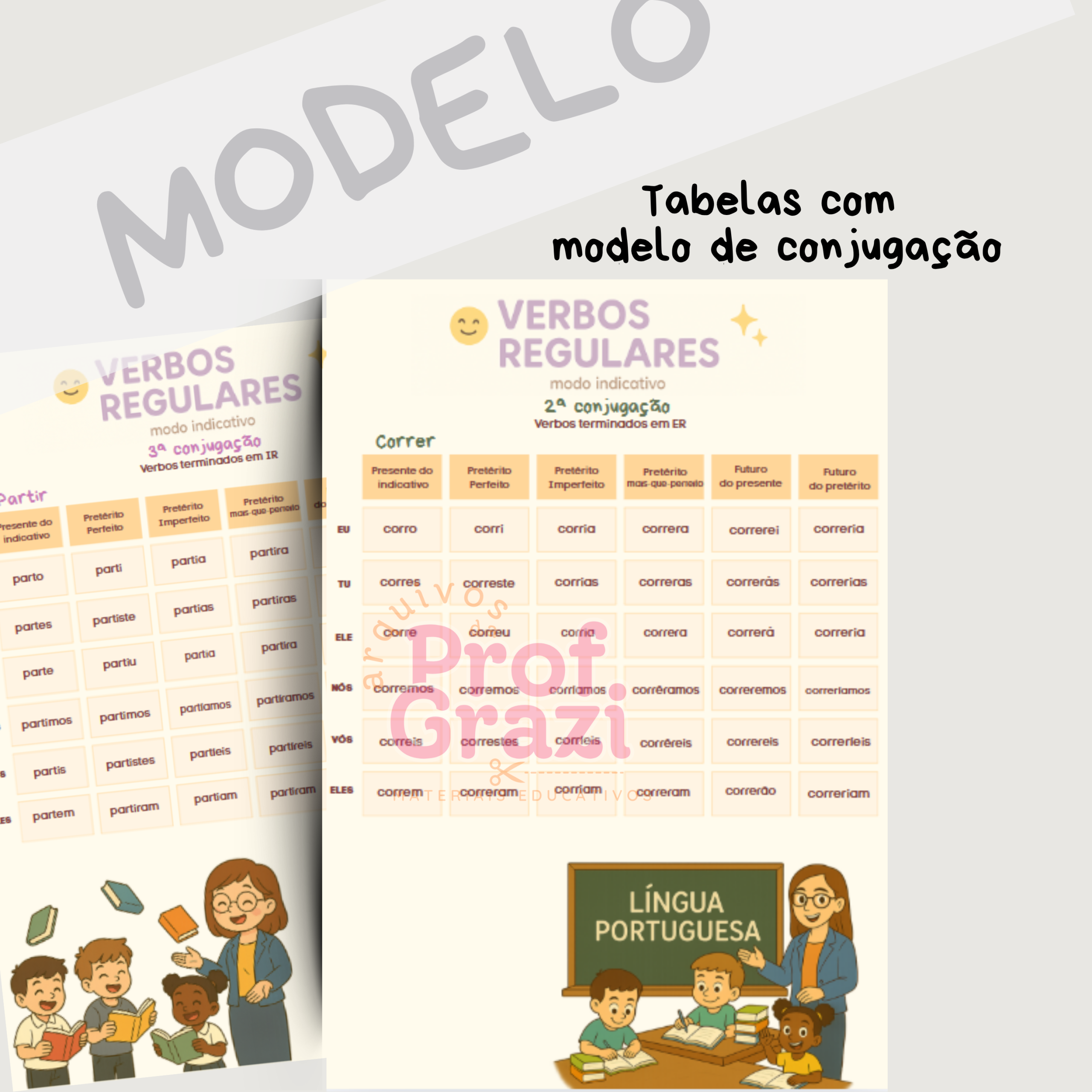 Este material foi pensado para tornar o estudo das conjugações verbais mais leve, prático e divertido!