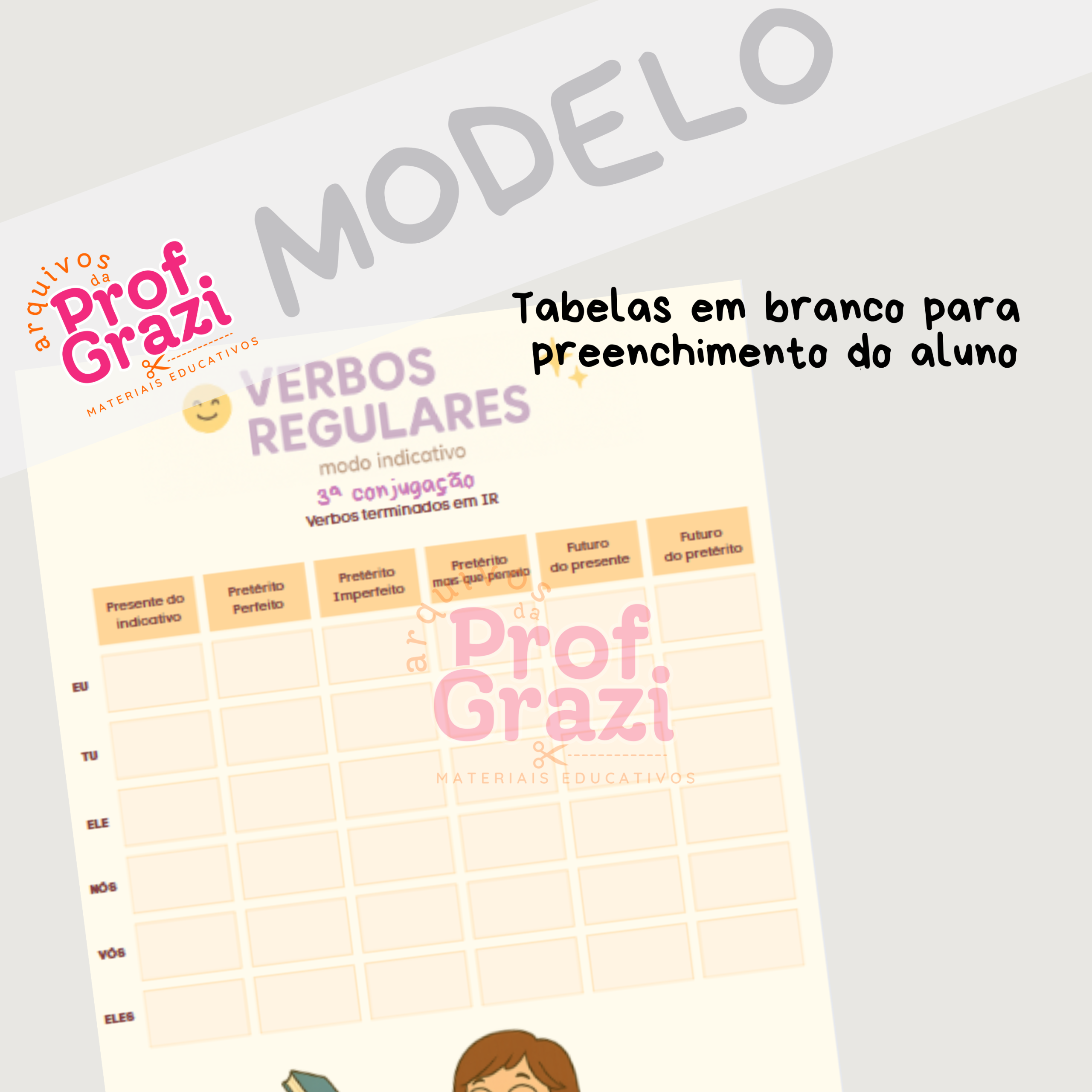 ✅ 3 tabelas em branco para que o aluno pratique, preenchendo com as formas verbais corretas