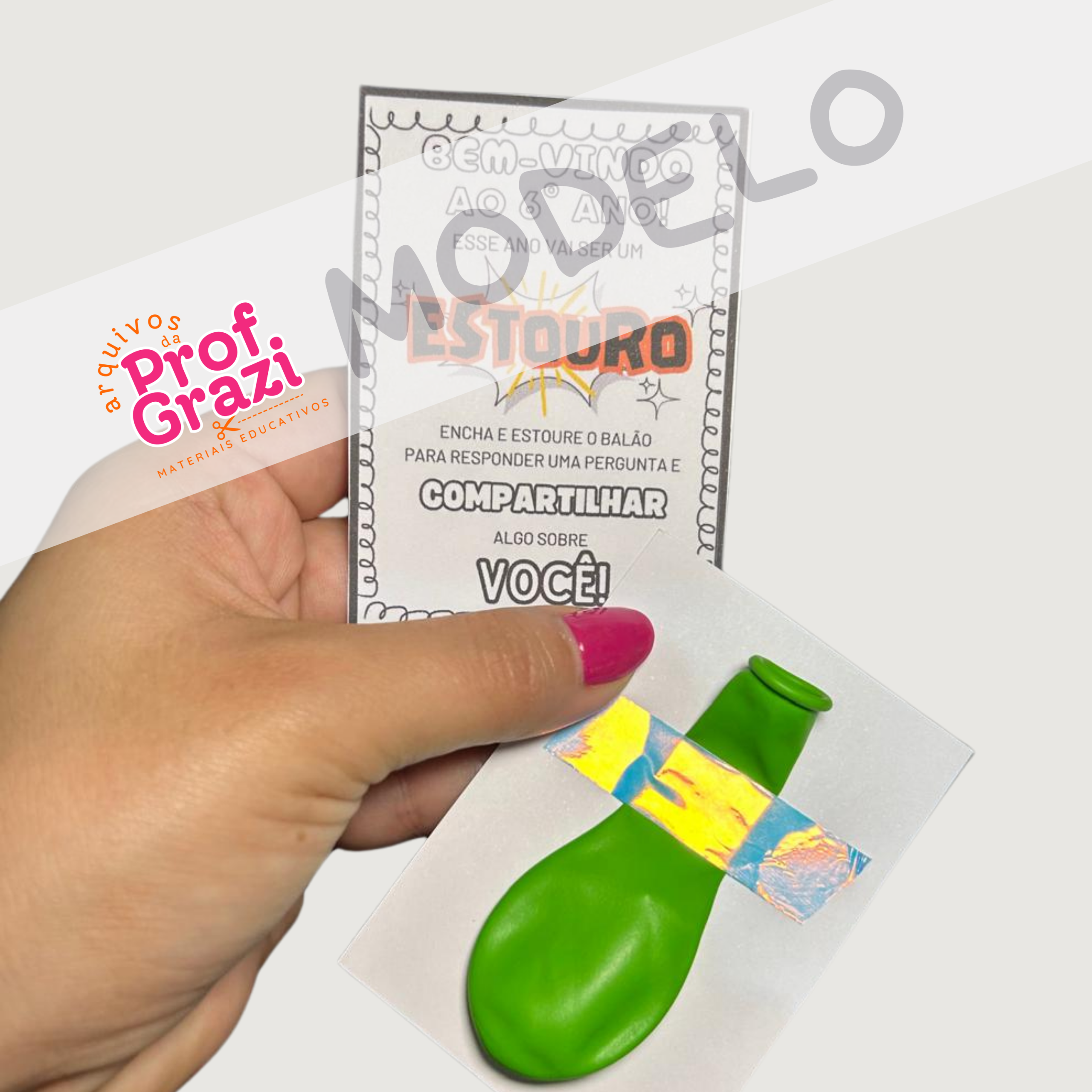 Você imprime os cartões e as perguntas, coloca uma pergunta dentro de cada balão, e os alunos, ao estourarem, revelam o desafio ou pergunta surpresa. Uma maneira leve de promover interação e quebrar o gelo já nos primeiros dias de aula!